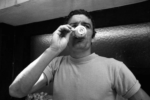 Bildnummer: 01425895 Datum: 01.06.1970 Copyright: imago/Sven Simon Luigi Riva (Italien) trinkt einen Espresso; Vneg, Vsw, quer, close, trinken, Durst, durstig, Getr‰nk, Tasse, Kaffee, Koffein Weltmeisterschaft 1970, Nationalmannschaft, Nationalteam Toluca Freizeit Fuflball WM Herren Mannschaft Einzelbild Privatbild Personen
