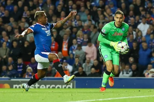 Glasgow (Scozia) 14/09/2022 - Champions League / Rangers-Napoli / foto Imago/Image Sport nella foto: Alfredo Morelos-Alex Meret ONLY ITALY