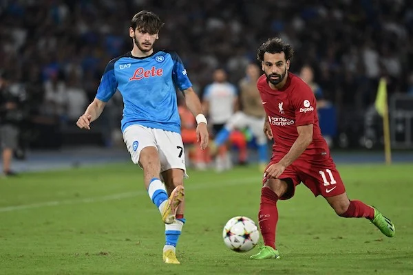 Ci Napoli 07/09/2022 - Champions League / Napoli-Liverpool / foto Carmelo Imbesi/Image Sport nella foto: Khvicha Kvaratskhelia-Mohamed Salah