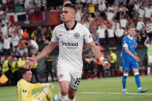 Siviglia (Spagna) 18/05/2022 - finale Europa League / Eintracht Francoforte-Rangers Glasgow / foto Imago/Image Sport nella foto: esultanza gol Rafael Santos Borre’ ONLY ITALY