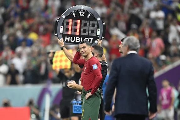 Portugal's forward #07 Cristiano Ronaldo prepares to enter the pitch during the Qatar 2022 World Cup round of 16 football match between Portugal and Switzerland at Lusail Stadium in Lusail, north of Doha on December 6, 2022. (Photo by PATRICIA DE MELO MOREIRA / AFP)