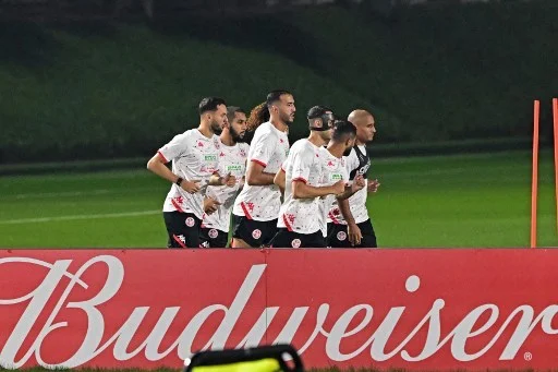 Tunisia's players take part in a training session at Al Egla facility in Doha on November 18, 2022, ahead of the Qatar 2022 World Cup football tournament. (Photo by MIGUEL MEDINA / AFP)