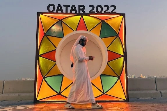 A man walks along the Corniche in Doha on November 16, 2022, ahead of the Qatar 2022 World Cup football tournament. (Photo by David GANNON / AFP)