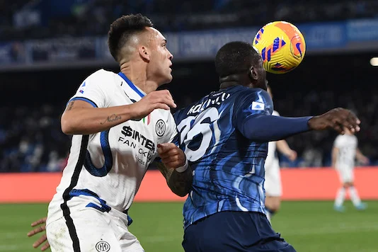 Db Napoli 12/02/2022 - campionato di calcio serie A / Napoli-Inter / foto Daniele Buffa/Image Sport nella foto: Lautaro Martinez-Kalidou Koulibaly