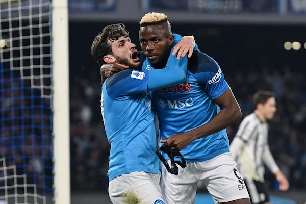 Ci Napoli 13/01/2023 - campionato di calcio serie A / Napoli-Juventus / foto Carmelo Imbesi/Image Sport nella foto: esultanza gol Victor Osimhen, Kvaratskhelia