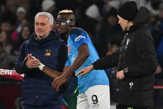 Mourinho su Osimhen: «Top, ma sta sempre per terra. Se va in Inghilterra lo ammazzano»