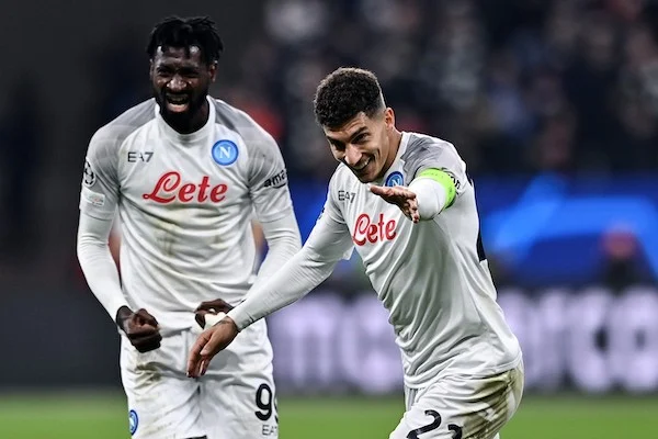 Il Napoli ha superato anche l’esame Champions e lo ha fatto col piglio delle grandi. Non solo ha vinto in casa dell’Eintracht e ha ipotecato la qualificazione (è stato anche espulso Kolo Muani che al ritorno non giocherà) ma ha dimostrato anche di non avere mai la tremarella, di non temere il ruolo di rappresentante del calcio italiano, e di conoscere perfettamente i momenti della partita. La rappresentazione calcistica della forza tranquilla evocata da Mitterrand. Per dirla non in politichese, archivia la pratica Champions come se fosse un caffè al bar. E lo fa in una serata in cui Kvaratskhelia ha sbagliato un rigore e un’occasione davanti a Trapp. È finita 2-0 con reti di Osimhen (su millimetrico assist di Lozano) e nella ripresa raddoppio di Di Lorenzo. La squadra di Spalletti ora ha un piede e tre quarti nei quarti di finale di Champions: traguardo mai raggiunto neanche ai tempi di Maradona. E si conferma nel ruolo di outsider di lusso della competizione.