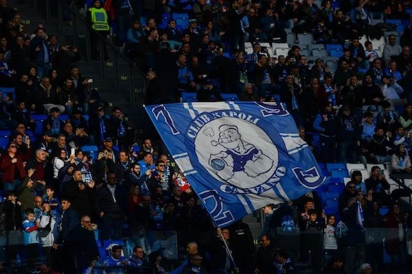 Napoli's fans cheer prior to the Italian Serie A football match between Napoli and Atalanta on March 11, 2023 at the Diego-Maradona stadium in Naples. (Photo by Filippo MONTEFORTE / AFP)