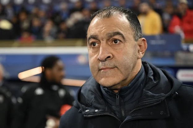 (FILES) Angersí Moroccan coach Abdel Bouhazama looks on prior to the French cup round of 64 football match between RC Strasbourg Alsace and Angers SCO at the Stade de la Meinau in Strasbourg, eastern France, on January 6, 2023. - The football club of Angers announced on March 7, 2023 the resignation of its coach Abdel Bouhazama, weakened by his sporting failure and undermined by his inappropriate comments in support of a player prosecuted for sexual touching. (Photo by SÈbastien BOZON / AFP)