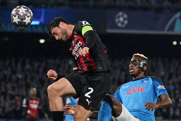 Ci Napoli 18/04/2023 - Champions League / Napoli-Milan / foto Carmelo Imbesi/Image Sport nella foto: Davide Calabria-Victor Osimhen