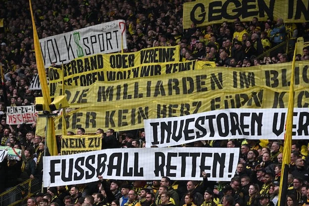 I tifosi che hanno espresso con i cori e gli striscioni la loro opposizione al modello della German Football League (DflF) sanno contro cosa stavano protestando? Le dichiarazioni sollevano dubbi: “Stai vendendo la nostra anima!” “Il campionato appartiene a tutti noi – contro gli investitori!”, “Stai distruggendo il nostro sport!”