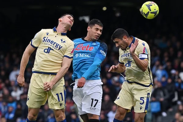 fare di più. Il Napoli è sembrato un po’ spento nel suo complesso e in alcune individualità. L’unico tiro nello specchio è quello di Osimhen sulla traversa, per il resto sul tabellino restano due conclusioni sul fondo di Di Lorenzo. E nel recupero della ripresa Ngonge ha avuto una colossale occasione per regalare la vittoria al Verona: lanciato da Verdi nella sguarnita metà campo del Napoli, il belga ha prima rallentato la corsa e poi ha concluso con una specie di mezzo pallonetto senza senso. Errore gravissimo perché la sua squadra con due punti in più sarebbe adesso a una lunghezza dallo Spezia. E i gialloblù non avrebbero rubato nulla, perché hanno interpretato la gara con lucidità e coraggio”.