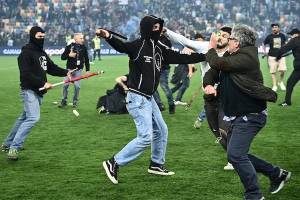 Db Udine 04/05/2023 - campionato di calcio serie A / Udinese-Napoli / foto Daniele Buffa/Image Sport nella foto: scontri tifosi Udinese-Napoli