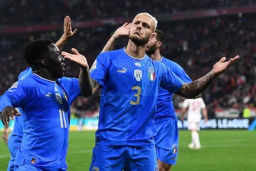 Mg Budapest (Ungheria) 26/09/2022 - Nations League / Ungheria-italia / foto Matteo Gribaudi/Image Sport nella foto: esultanza gol Federico Dimarco