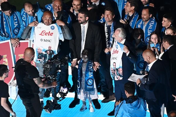 “E poi c’è il merchandising. Ufficiale e non. Tutti vogliono portarsi a casa qualcosa d’azzurro. I rivenditori ufficiali sono stati presi d’assalto, la T-shirt celebrativa è sold out e anche chi la vuole comprare su Amazon dovrà aspettare la fine di maggio o in alcuni casi il mese di giugno per riceverla. Le maglie presentate durante la festa al Maradona, le ‘Face Game’, stanno riscuotendo un certo successo, tanto che quelle di Osimhen, Kvaratskhelia e Di Lorenzo sono al momento esaurite”.