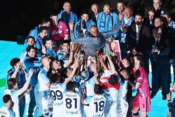 Finalmente il segno concreto dello scudetto, la coppa, è a Napoli. Dazn ha portato nella capoluogo campano il trofeo da consegnare nelle mani del capitano Di Lorenzo. Lo riporta l’Ansa che scrive come la coppa accolta dall’amministratore delegato di Tim Retail, Marco Sanza, sarà disponibile ai tifosi nel negozio Tim di Piazza dei Martiri.