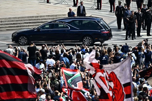 Ai funerali il racconto dello stadio è prevalso su quello dello Stato. La solennità è andata a sbattere sul muro dei cori e lo sventolio delle bandiere rossonere