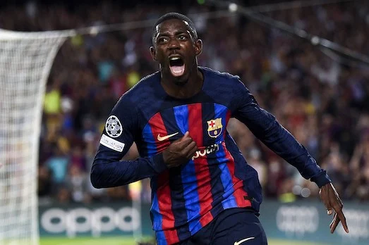 Barcellona (Spagna) 12/10/2022 - Champions League / Barcellona-Inter / foto Image Sport nella foto: esultanza gol Ousmane Dembele’ ONLY ITALY