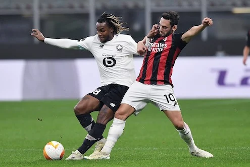 Db Milano 05/11/2020 - Europa League / Milan-Lille / foto Daniele Buffa/Image Sport nella foto: Renato Sanches-Hakan Calhanoglu