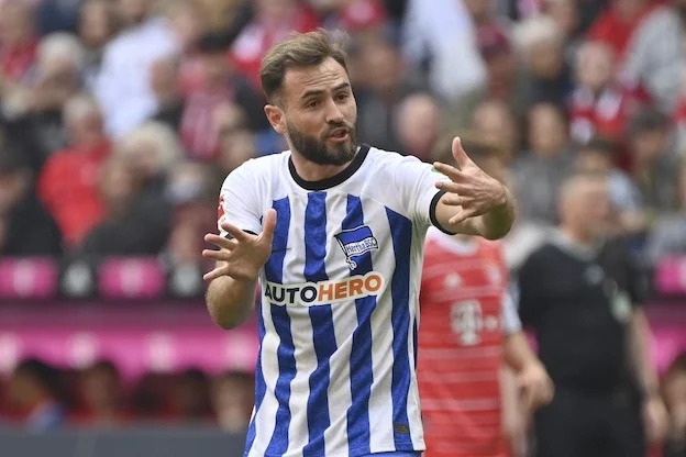 Lucas TOUSART (Hertha BSC), gesture, gives instructions, action, single image, cut single motif, half figure, half figure. Football 1st Bundesliga season 2022/2023, 30th matchday, matchday30, FC Bayern Munich -Hertha BSC Berlin 2-0 on April 30th, 2023, ALLIANZAREN A. ? (Photo by Frank Hoermann / SVEN SIMON / SVEN SIMON / dpa Picture-Alliance via AFP)