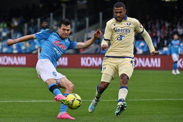 Ci Napoli 15/04/2023 - campionato di calcio serie A / Napoli-Hellas Verona / foto Carmelo Imbesi/Image Sport nella foto: Hirving Lozano-Isak Hien