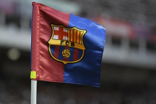 A corner flag with the badge of FC Barcelona flies during the 58th Joan Gamper Trophy football match between FC Barcelona and Tottenham Hotspur FC at the Estadi Olimpic Lluis Companys in Barcelona on August 8, 2023. (Photo by Pau BARRENA / AFP)