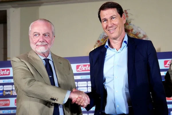 Napoli 19/06/2023 - conferenza stampa presentazione nuovo allenatore Napoli Rudi Garcia / foto Imago/Image Sport nella foto: Aurelio De Laurentiis-Rudi Garcia ONLY ITALY