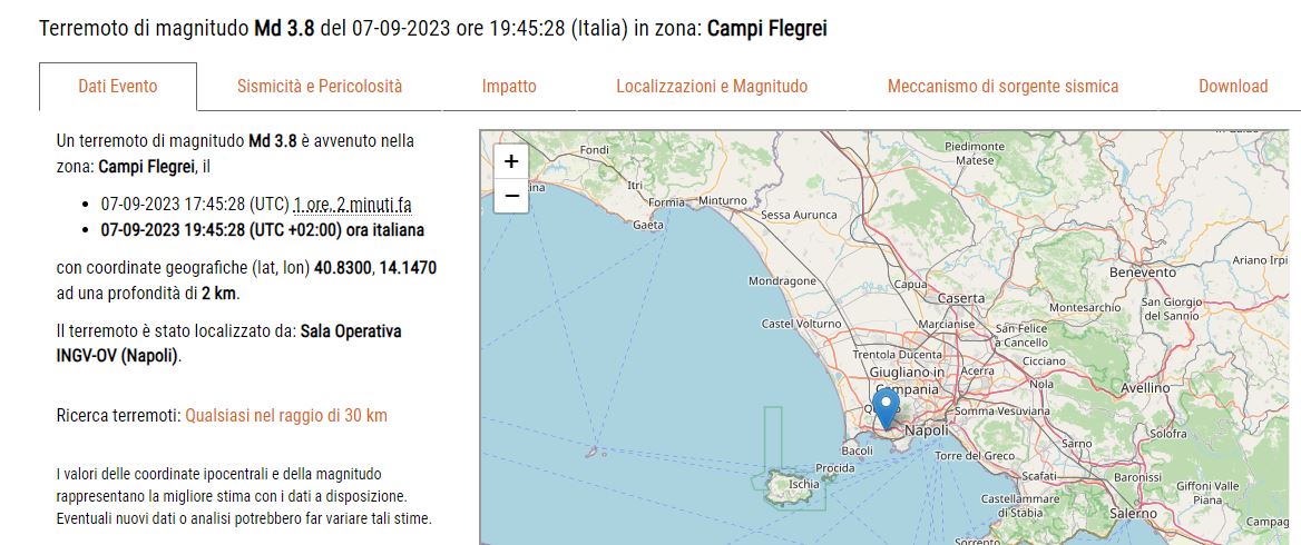 Alle 19:45, un (relativamente) intenso #terremoto di magnitudo 3.8 è avvenuto tra Pozzuoli e Bagnoli, all’interno della caldera dei #CampiFlegrei. La scossa è stata nettamente avvertita anche a #Napoli e risulta essere la più forte dalla crisi sismica degli anni 80′. pic.twitter.com/ORkWHah5OT