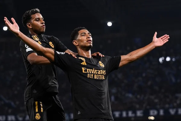Ci Napoli 03/10/2023 - Champions League / Napoli-Real Madrid / foto Carmelo Imbesi/Image Sport nella foto: esultanza gol Jude Bellingham
