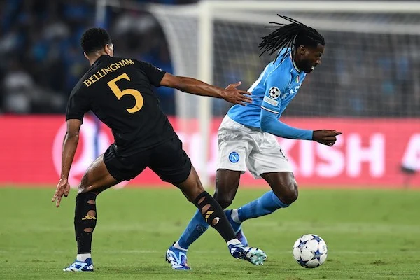 Db Napoli 03/10/2023 - Champions League / Napoli-Real Madrid / foto Daniele Buffa/Image Sport nella foto: Jude Bellingham-Andre’ Zambo Anguissa