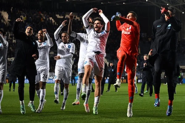 Mg Bergamo 25/11/2023 - campionato di calcio serie A / Atalanta-Napoli / foto Matteo Gribaudi/Image Sport nella foto: esultanza a fine gara Napoli