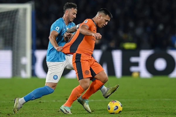 Db Napoli 03/12/2023 - campionato di calcio serie A / Napoli-Inter / foto Daniele Buffa/Image Sport nella foto: Lautaro Martinez-Amir Rrahmani