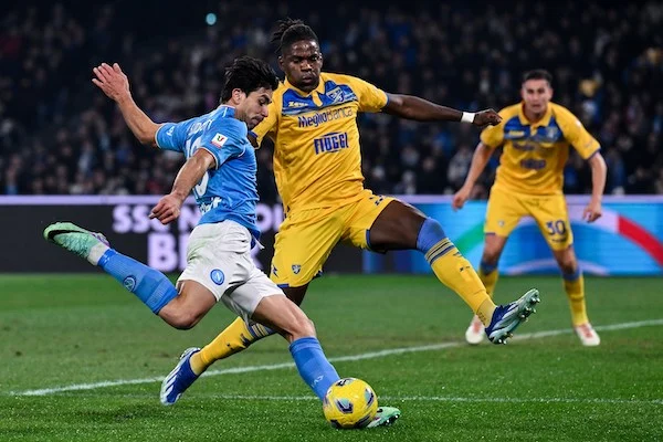 Ci Napoli 19/12/2023 - Coppa Italia / Napoli-Frosinone / foto Carmelo Imbesi/Image Sport nella foto: Giovanni Simeone-Caleb Okoli