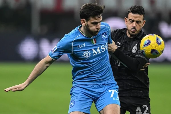 Mg Milano 11/02/2024 - campionato di calcio serie A / Milan-Napoli / foto Matteo Gribaudi/Image Sport nella foto: Khvicha Kvasratskhelia-Alessandro Florenzi
