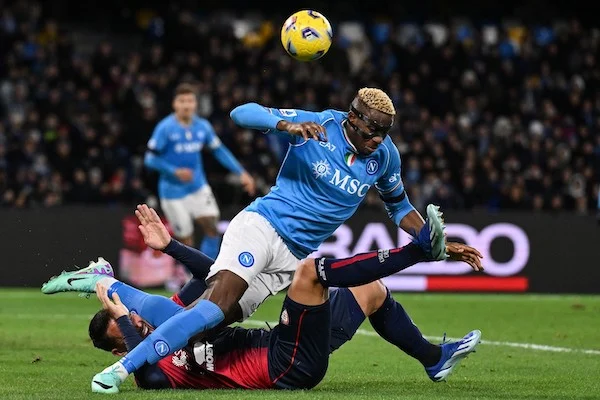 Ci Napoli 16/12/2023 - campionato di calcio serie A / Napoli-Cagliari / foto Carmelo Imbesi/Image Sport nella foto: Victor Osimhen-Edoardo Goldaniga