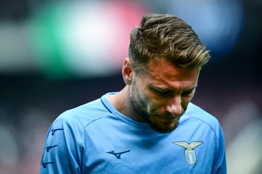 Lazio's Italian forward Ciro Immobile walks in the pitch prior to the Italian Serie A football match between Inter Milan and Lazio at San Siro Stadium in Milan, on April 30, 2023. (Photo by Marco BERTORELLO / AFP)