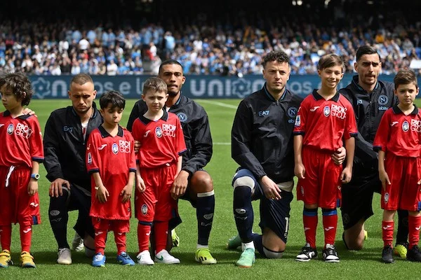 Napoli-Atalanta, giocatori azzurri in ginocchio contro il razzismo