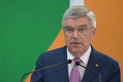 The President of the International Olympic Committee (IOC) Thomas Bach delivers a speech during a ceremony to mark one year until the start of Paris Olympics in Saint-Denis, outside Paris, on July 26, 2023, ahead of the Paris 2024 Summer Olympic and Paralympic Games. Thomas Bach toured the under-construction Athletes' Village for the 2024 Paris Olympics the day before and said the 10,500 competitors would be "very happy" there. (Photo by Alain JOCARD / AFP)