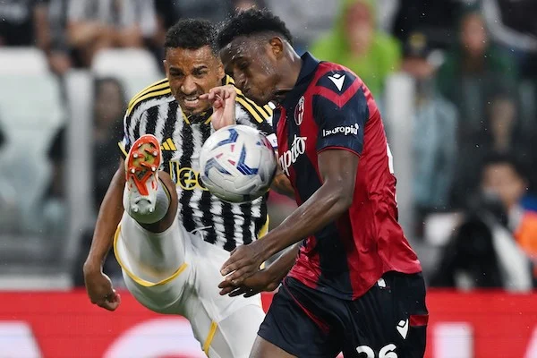 Mg Torino 27/08/2023 - campionato di calcio serie A / Juventus-Bologna / foto Matteo Gribaudi/Image Sport nella foto: Danilo Luiz da Silva-Jhon Lucumi'