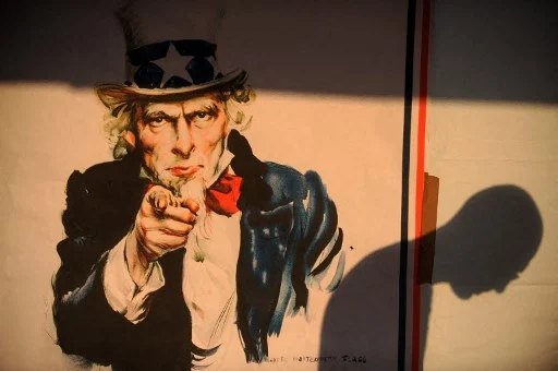 A shadow of a voter is seen on a poster of Uncle Sam reading "Come to vote in California" during the "American elections for non Americans" in the village of La California, in the Livorno region of Tuscany on October 26, 2008. The event, organised ten days ahead the US official elections, by La California and Italian photographer Olivero Toscani, best-known for his controversial advertising campaigns for Italian brand Benetton, wishes to raise the question: "As the United States of America is the worlds greatest power, affecting and determining the fate of the planet: why shouldnt we have the chance to vote for their-our President too?". Apart from Barack Obama and John Mc Cain, voters could choose between local candidates for US President and results from the "elections" will be brought to the US consulate in Florence. AFP PHOTO / FILIPPO MONTEFORTE (Photo by FILIPPO MONTEFORTE / AFP)