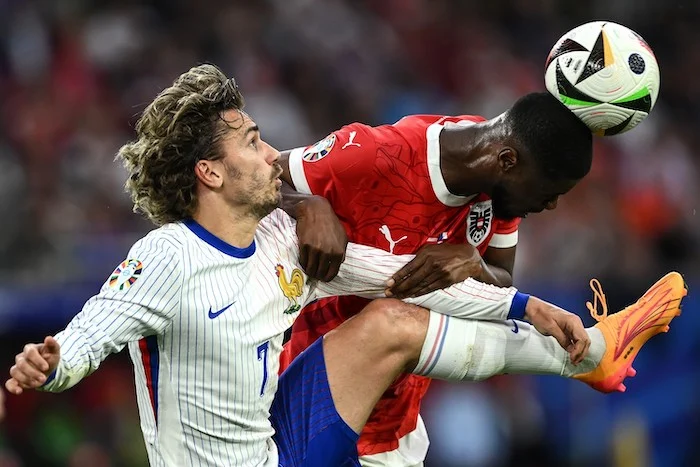 Mg Dusseldorf (Germania) 17/06/2024 - Euro 2024 / Austria-Francia / foto Matteo Gribaudi/Image Sport nella foto: Antoine Griezmann-Kevin Danso