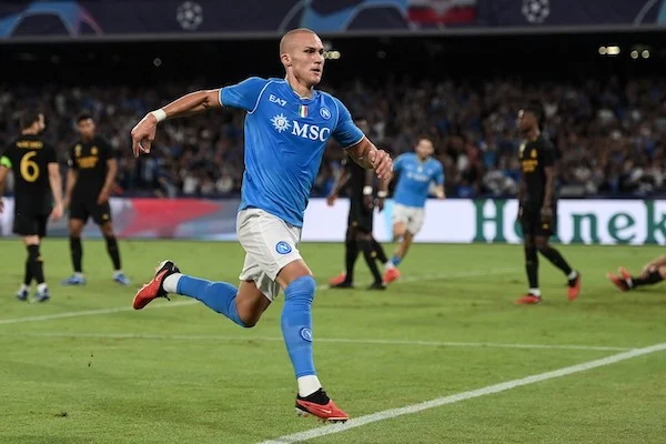 Db Napoli 03/10/2023 - Champions League / Napoli-Real Madrid / foto Daniele Buffa/Image Sport nella foto: esultanza gol Leo Ostigard