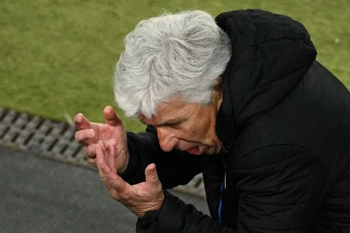 Atalanta's Italian coach Gian Piero Gasperini reacts on the touchline during the UEFA Europa League final football match between Atalanta and Bayer Leverkusen at the Dublin Arena stadium, in Dublin, on May 22, 2024. (Photo by Oli SCARFF / AFP)