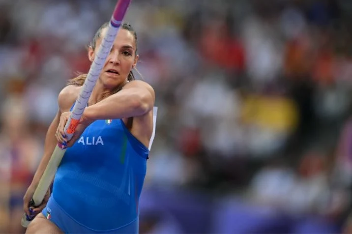 Italy's Elisa Molinarolo competes in the women's pole vault final of the athletics event at the Paris 2024 Olympic Games at Stade de France in Saint-Denis, north of Paris, on August 7, 2024. Andrej ISAKOVIC / AFP