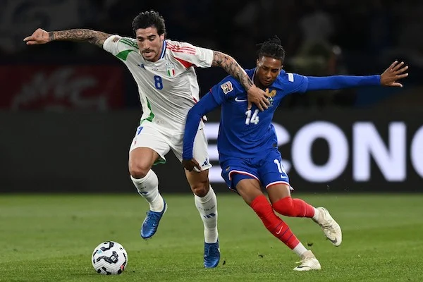 Db Parigi (Francia) 06/09/2024 - Nations League / Francia-Italia / foto Daniele Buffa/Image Sport nella foto: Sandro Tonali-Michael Olise