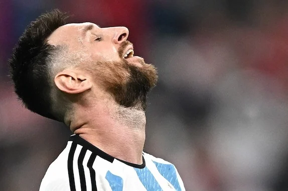 Argentina's forward #10 Lionel Messi reacts to a missed opportunity during the Qatar 2022 World Cup football semi-final match between Argentina and Croatia at Lusail Stadium in Lusail, north of Doha on December 13, 2022. (Photo by Anne-Christine POUJOULAT / AFP)