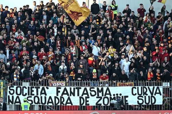 Roma, striscione in Curva sud: “Società fantasma, na squadra de zombie”