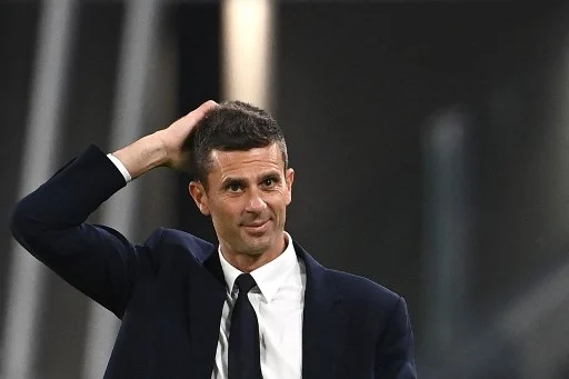Juventus' Italian head coach Thiago Motta gestures at the end of the Italian Serie A football match between Juventus and Napoli at Juventus Stadium in Turin on September 21, 2024. (Photo by Isabella BONOTTO / AFP)
