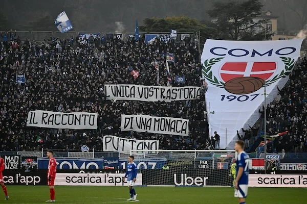 Como-Monza, dalla curva hanno srotolato: “L'unica vostra storia: il racconto di una monaca puttana”. Non c'è poesia