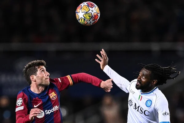 Mg Barcellona (Spagna) 12/03/2024 - Champions League / Barcellona-Napoli / foto Matteo Gribaudi/Image Sport nella foto: Sergi Roberto-Andre’ Zambo Anguissa